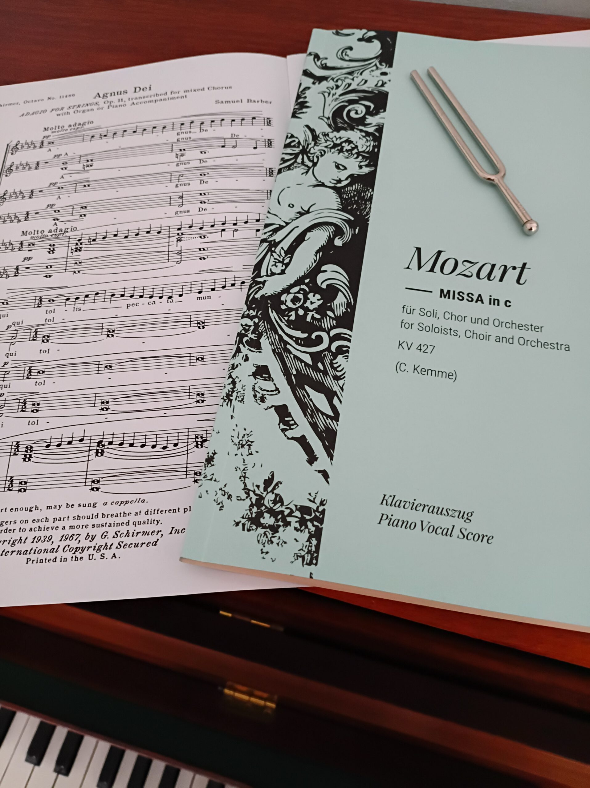 Als Ergänzung singen wir das „Agnus Dei“ von Samuel Barber (1910-81). Es basiert auf dem zweiten Satz seines Streichquartetts von 1936 das der amerikanische Komponist kurz später als „Adagio for Strings“ voll orchestrierte. Es wurde bis heute mehrfach als Filmmusik eingesetzt, zu offiziellen Anlässen gespielt und auch mehrfach in der Popmusik verwendet. 1967 leitete Barber davon eine Chorfassung auf den Text des Agnus Dei ab.